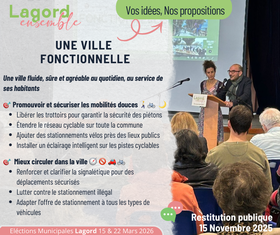 Samedi 15 novembre, nous avons présenté la restitution publique des idées, suggestions et besoins exprimés par les Lagordaises et Lagordais : lors des ateliers citoyens d’octobre, au marché, dans nos rencontres quotidiennes, et au fil de toutes ces discussions qui nourrissent notre démarche depuis le début. 🙌💬