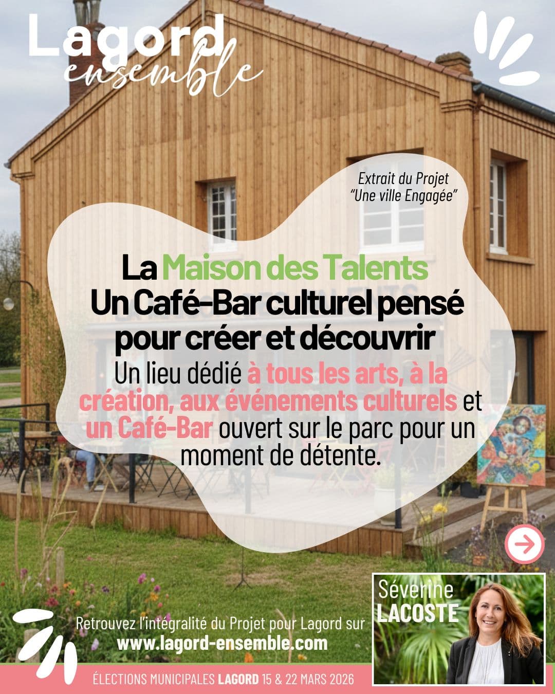 La réhabilitation de l’ancienne école du parc Charier permet donc de développer un lieu culturel et convivial, attendu par les Lagordais et cohérent avec la vocation du parc, tout en anticipant l’ouverture future du pôle enfance. Le projet de la « Maison des Talents » est un choix cohérent, légal et complémentaire qui permettra une réponse aux attentes des Lagordaises et Lagordais.