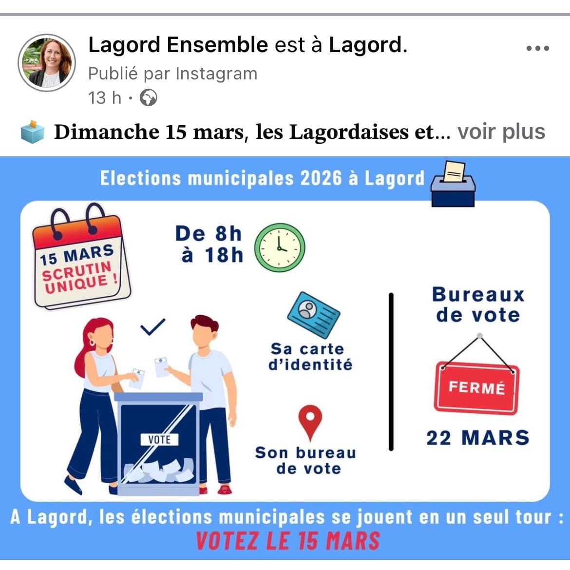 โ ๏ธ Dimanche 15 Mars = Un seul tour ร Lagord